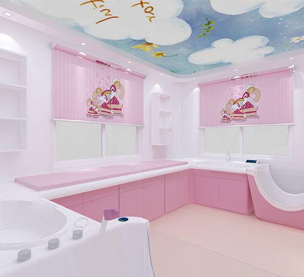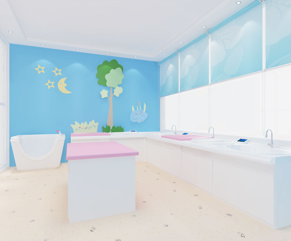 2.組成:嬰兒洗浴中心由嬰兒洗禮池,嬰兒游泳池,護理平臺,撫觸軟包平臺,洗手池組成。